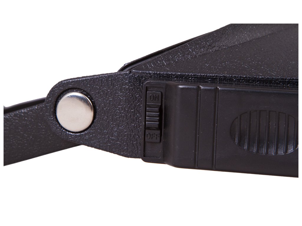 Lupa se velmi snadno upevňuje k hlavě pomocí pružné čelenky se suchým zipem. Tato lupa vám uvolní ruce, díky čemuž můžete provádět jakoukoli práci s drobnými předměty. Pro větší pohodlí je lupa vybavena integrovaným osvětlením – dva jasné světelné zdroje se nacházejí po stranách čočky. Intenzita světla je dostatečná i pro práci v úplné tmě. Osvětlení je napájeno bateriemi typu AAA (nejsou součástí sady).