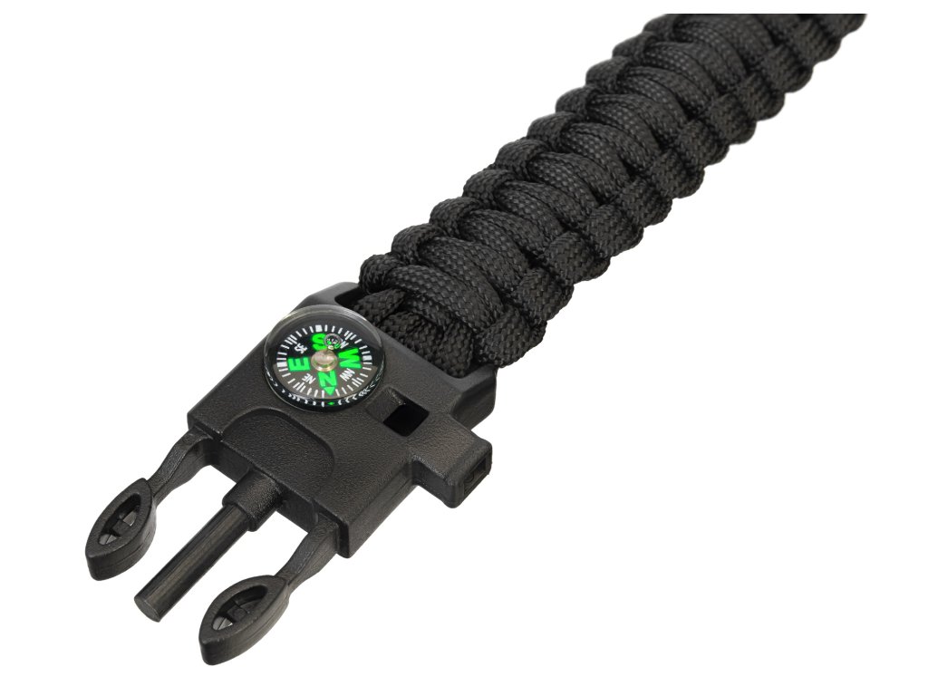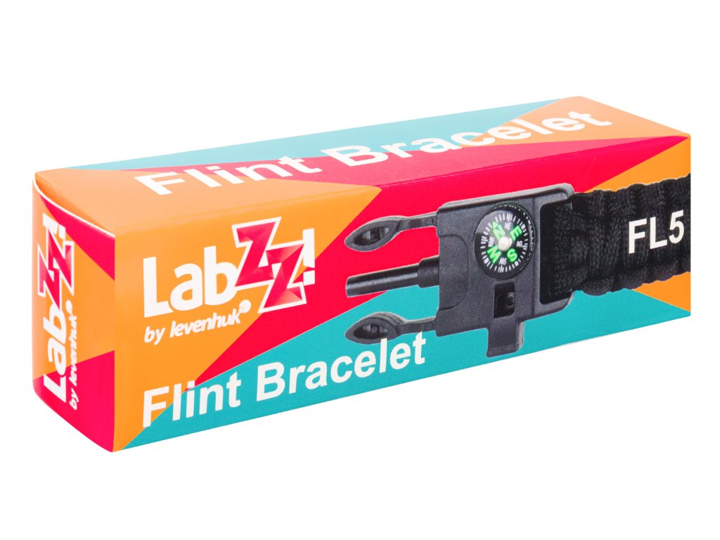 Hlavními prvky náramku pro přežití Levenhuk LabZZ FL5 jsou křesadlo a kousek oceli k rozdělání ohně zabudované do spony. Tento kousek oceli má ostrý břit a slouží jako miniaturní nůž. Náramek obsahuje píšťalku pro vysílání signálů, tekutý kompas s ciferníkem pro orientaci na světové strany a korekci trasy během túry. Pokud náramek rozmotáte, budete mít k dispozici 2 metry dlouhou silnou nylonovou šňůru.