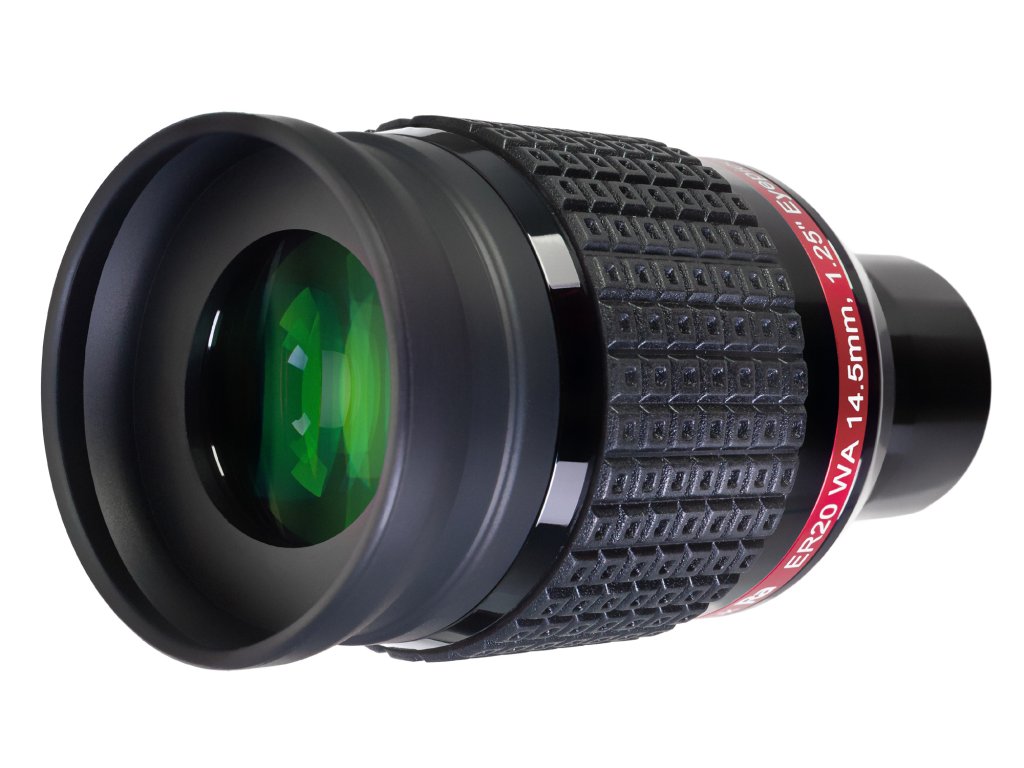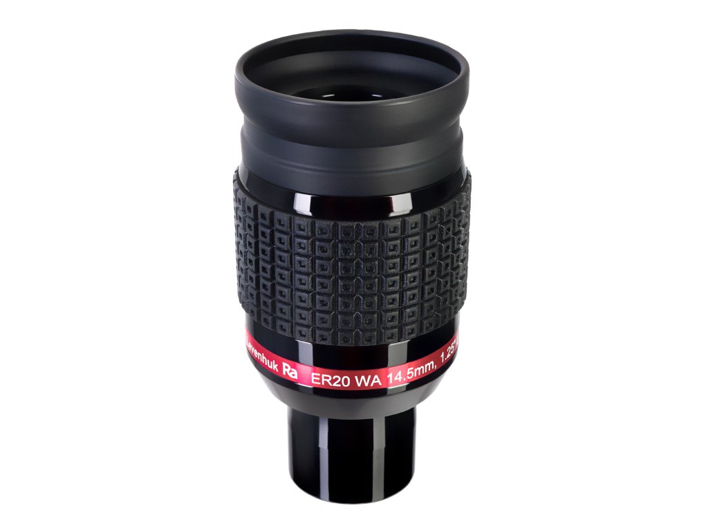 Levenhuk Ra ER20 WA 14,5 mm je širokoúhlý okulár s 68° zorným polem, který je ideální jak pro hvězdářské dalekohledy s vysokou aperturou, tak i pro méně výkonné hvězdářské dalekohledy pro pozemská pozorování. Nejlépe se hodí pro pozorování jasných a rozšířených objektů hlubokého vesmíru, jako jsou galaxie a mlhoviny. Pomocí tohoto okuláru také můžete rozlišit určité detaily otevřených hvězdokup.
