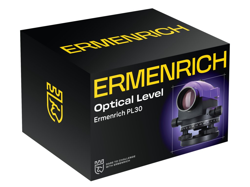 Optický nivelační přístroj Ermenrich PL30 dokáže měřit svislou výšku (výškový rozdíl) mezi dvěma body a jejich vzájemnou vzdálenost, úhly v horizontální rovině a vzdálenost k objektu. Přístroj disponuje 32x zvětšením, takže lze pozorovat milimetrovou stupnici nivelační tyče na vzdálenost až 50 metrů. Metrické odstupňování typu „E“ je viditelné v celé pracovní vzdálenosti – až 120 metrů. Optický nivelační přístroj je vybaven kompenzátorem, který automaticky vyrovnává cílovou linii, což usnadňuje a zpříjemňuje práci. Kompenzátor je robustní a zajišťuje vysokou přesnost měření.