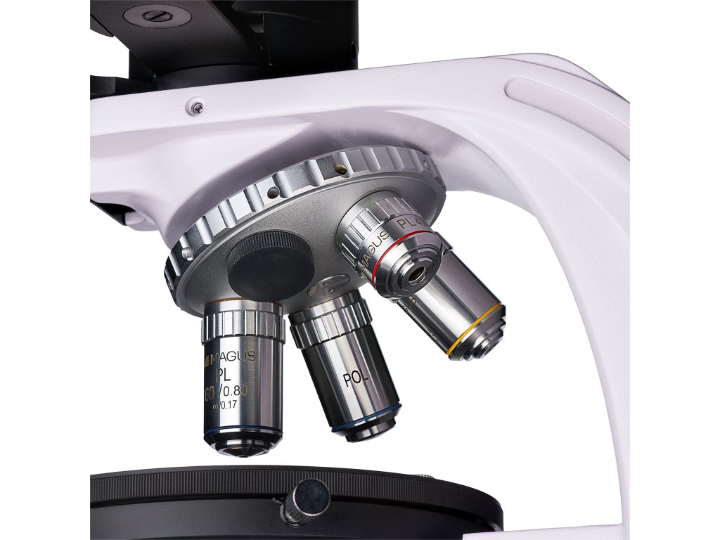 Revolverový nosič objektivů je navržen pro současnou instalaci pěti objektivů, přičemž čtyři jsou již součástí dodávky. Další objektiv z řady příslušenství MAGUS lze zakoupit samostatně. Všechny objektivy jsou navrženy pro práci s krycími sklíčky o tloušťce 0,17 mm. Díky konstrukci revolverového nosiče „mimo pozorovatele“ je objektiv vložený do optické dráhy při práci dobře viditelný, což výzkumníkovi usnadňuje práci. Sloty revolverového nosiče jsou vystředěné.