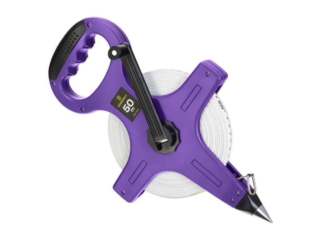 Svinovací metr Ermenrich Reel SL50 je měřicí páska pro geodety určená k měření délky do 50 metrů. Tento model najde uplatnění například při stavbě venkovského domu, během územního plánování nebo při práci s dlouhými objekty. Páska metru je integrována do krytu z ABS plastu, má ergonomickou rukojeť a ostrý hrot pro upevnění nástroje v zemi.Sklolaminátová páska má dvojitou stupnici. Ruční klička se samosvorným mechanismem slouží k pohodlnému svinutí pásky zpět do krytu. Pásku je možné skládat, stočit do klubíčka apod. Páska se nekroutí ani nezamotává a je odolná proti vlhkosti a vodě. Proto ji lze používat i za nepříznivého počasí, např. v zimních měsících nebo za deště.