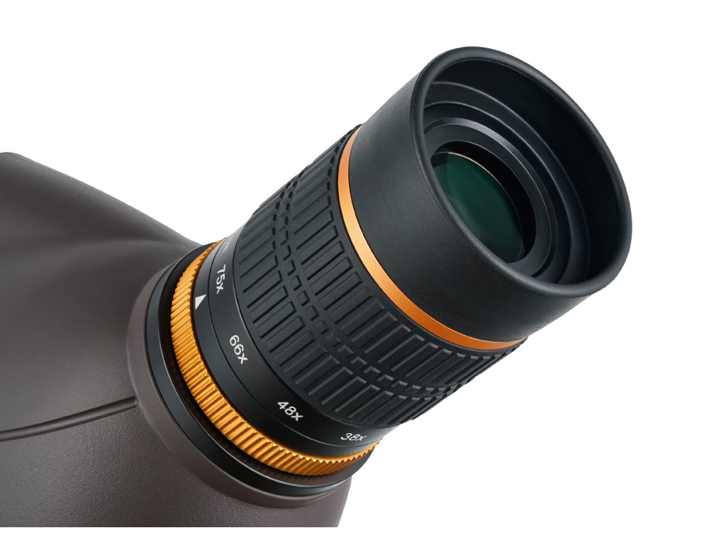 Kromě objektivu typu zoom obsahuje jeho optická soustava další velmi důležitý prvek – vysoce kvalitní okulár se sedmi členy, který přenáší nádherný obraz ve vysokém rozlišení. Čočky jsou vyrobeny ze skla a chráněny několika vrstvami antireflexní povrchové úpravy. Přenášený obraz je ostrý, kontrastní a podrobný. Zvětšení můžete plynule měnit v rozmezí od 25x do 75x. Šikmý okulár umožňuje mimořádně pohodlné pozorování v oblasti kolem nadhlavníku. Přístroj je vybaven odnímatelným okulárem.