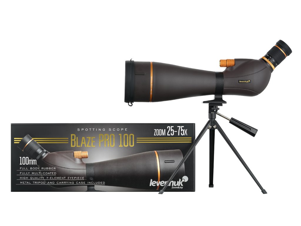 Spektiv Levenhuk Blaze PRO 100 je opravdovým pokladem pro milovníky výletů do přírody nebo studia ptáků a zvířat v jejich přirozeném prostředí. Užitečným jej shledají i lovci, kteří hledají spolehlivého pomocníka při pozorování v otevřené krajině. Tento pozorovací dalekohled je vybaven výkonným objektivem s velkou aperturou a vzhledem k hermeticky uzavřenému plášti naplněnému dusíkem odolá různým nástrahám. Levenhuk Blaze PRO 100 spojuje spolehlivost a funkčnost v jednom optickém přístroji.