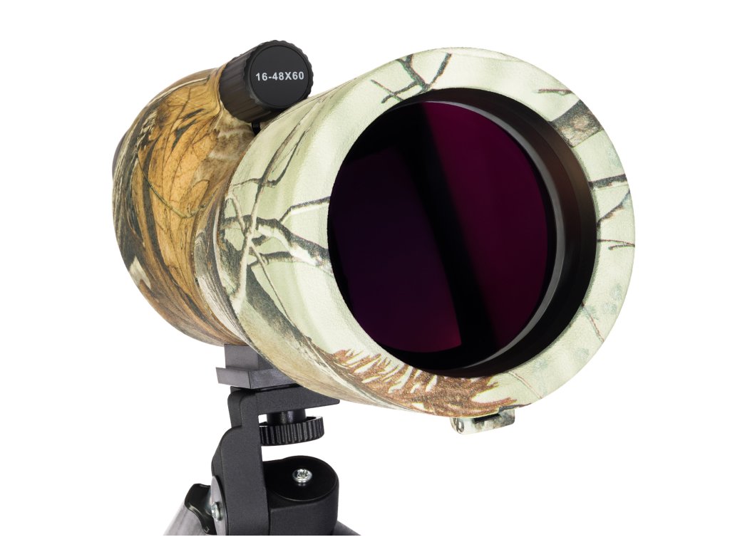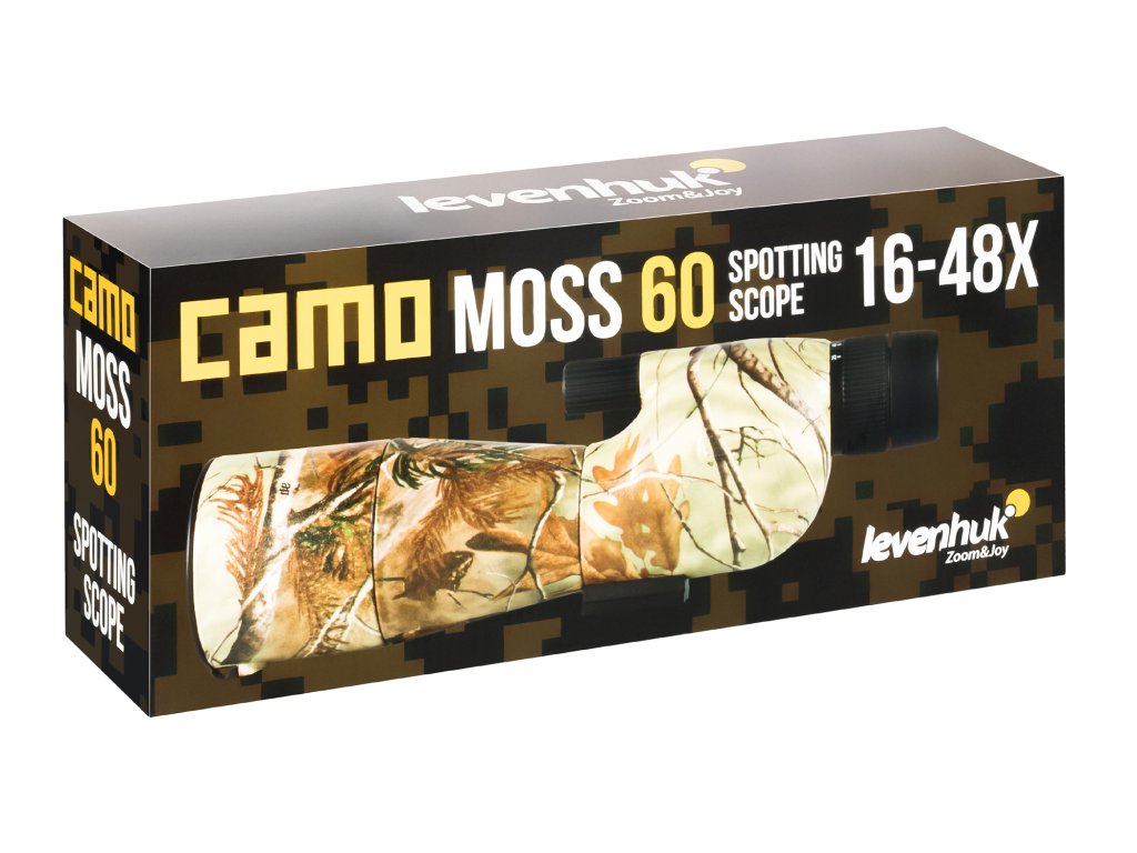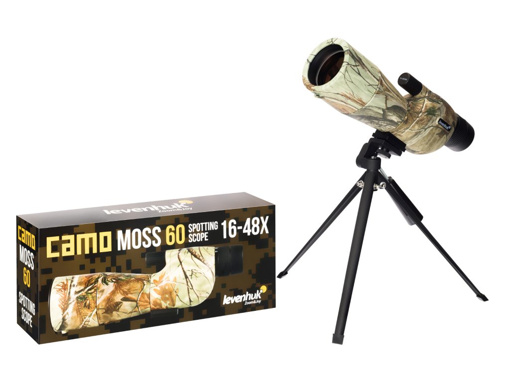 Pozorovací dalekohled Levenhuk Camo 60 je výkonný optický nástroj pro pozorování pozemních objektů. Protože je trubice přímá, je vhodná pro pozorování, kdy je zorný úhel přímý nebo shora dolů, např. z věže nebo z kopce. Dalekohled se bude hodit a bude účinný při lovu, střelbě z pušky i při ochraně území a hranic a klasickém pozorování krajiny. Dodává se s malým kovovým stativem, který se ovládá nastavovacím knoflíkem.