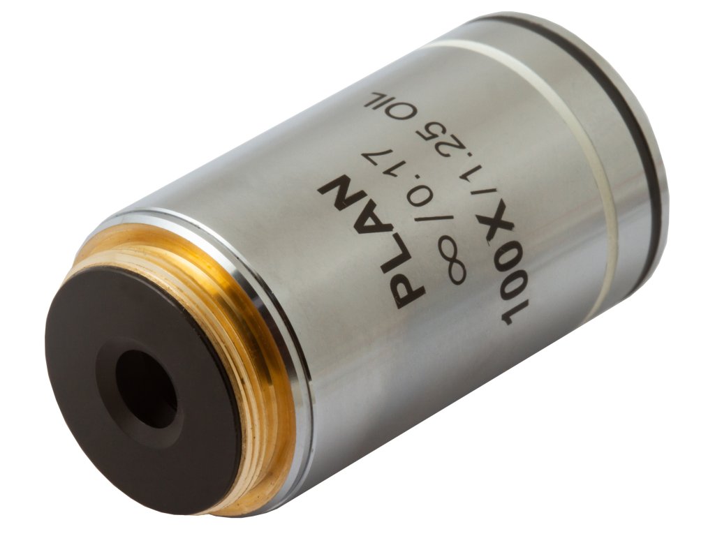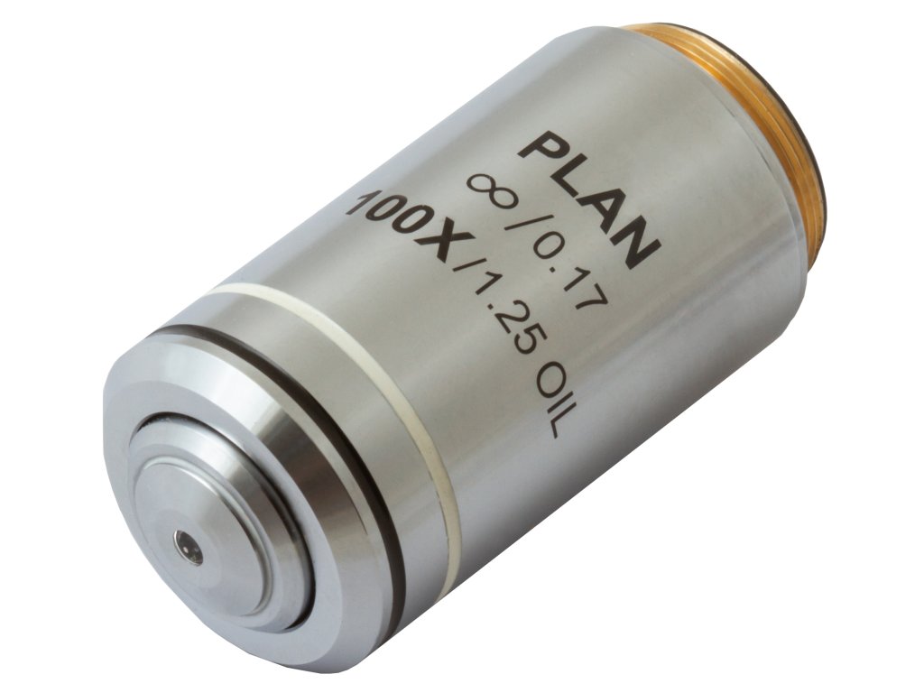 Rovinný achromatický objektiv s korekcí na nekonečno Levenhuk MED 100x představuje příslušenství pro laboratorní mikroskopy. Je navržen pro optické systémy s nekonečnou korekcí a umožňuje provádět vysoce přesný výzkum s velkým přiblížením. Může provádět 100násobné přibližování. Rovinná achromatická optika dokonale koriguje zakřivení pole pomocí zploštění zorného pole. Umožňuje přenos kvalitního a ostrého obrazu bez sférických a chromatických aberací. Tento objektiv můžete používat pro klasická „suchá“ pozorování. Kromě toho můžete použít funkci olejové imerze.