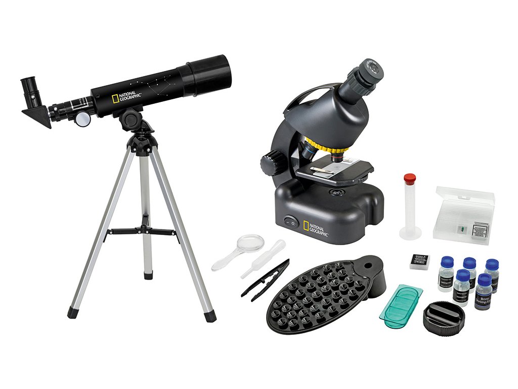 This set includes two items that introduce you to astronomy and microscopy! It includes a telescope with 60x magnification and a microscope with up to 640x magnification!