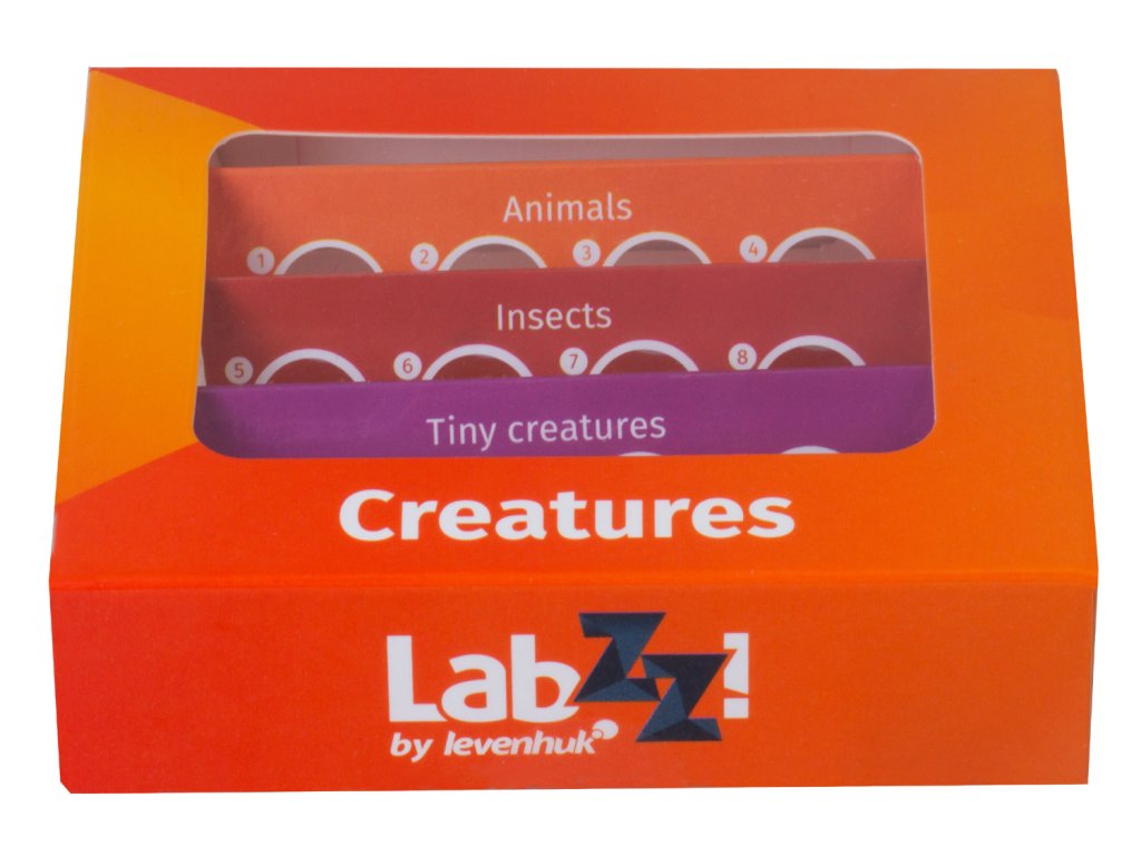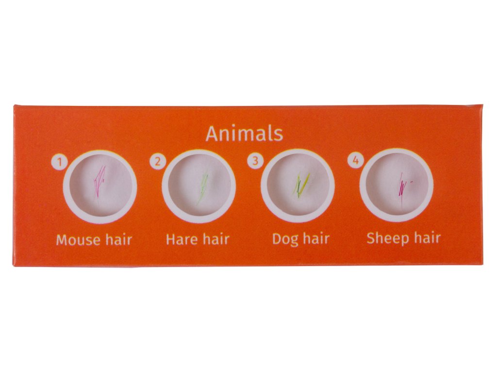 Všechny preparáty jsou označené a uspořádané do skupin: najdete tu například skupiny „Zvířata“, „Rostliny“ a „Malí živočichové“. Preparáty jsou pokryté barevným papírem s kulatými průhlednými otvory. Sada se dodává ve značkové krabici z odolné lepenky.