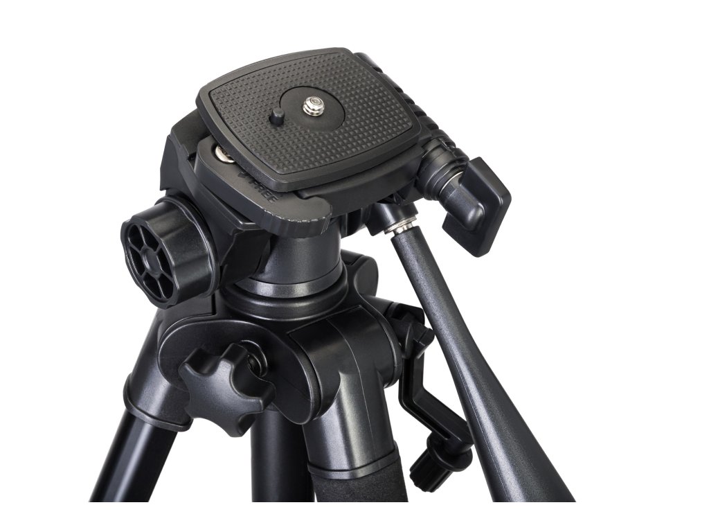 Stativ je kompaktní (ve složeném stavu) a je vyroben z lehkého a pevného hliníku. Je ideálním společníkem na výlety a dlouhé cesty.