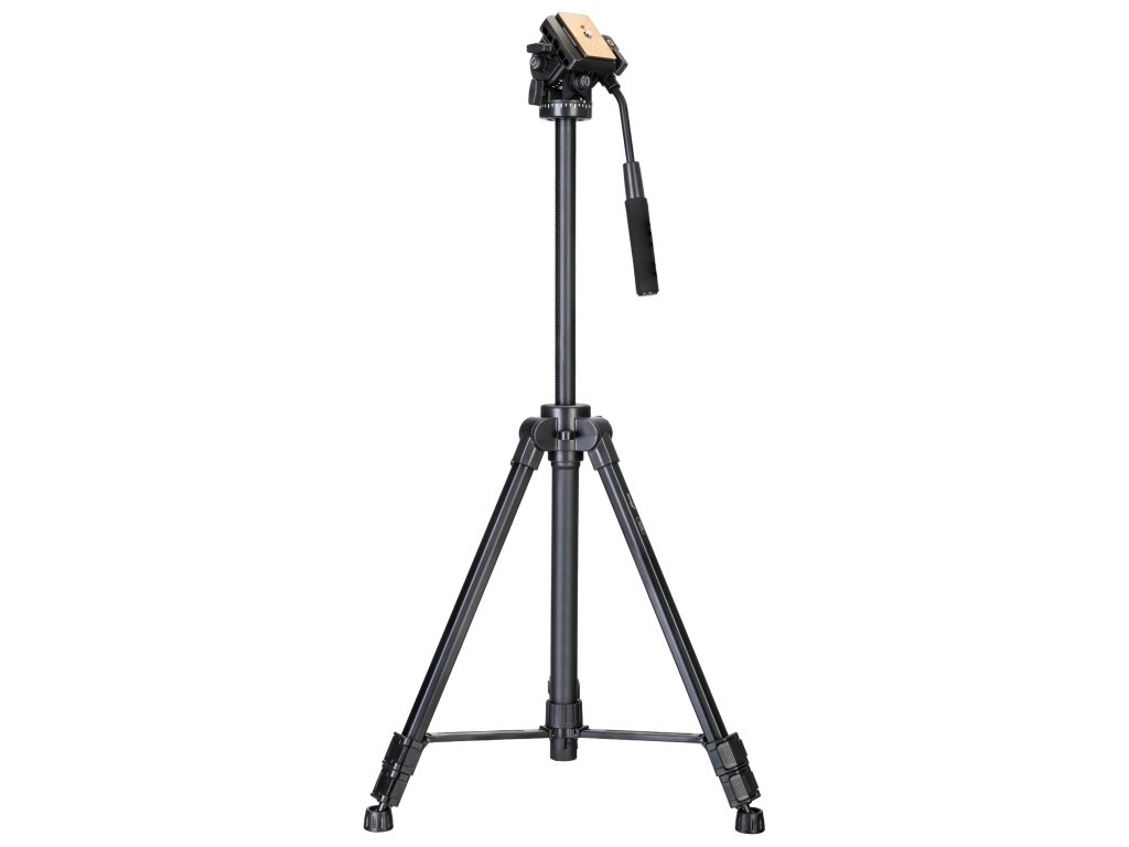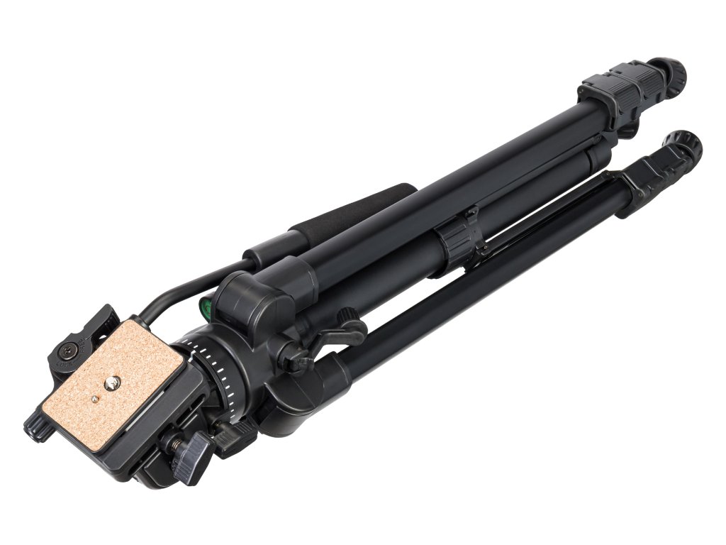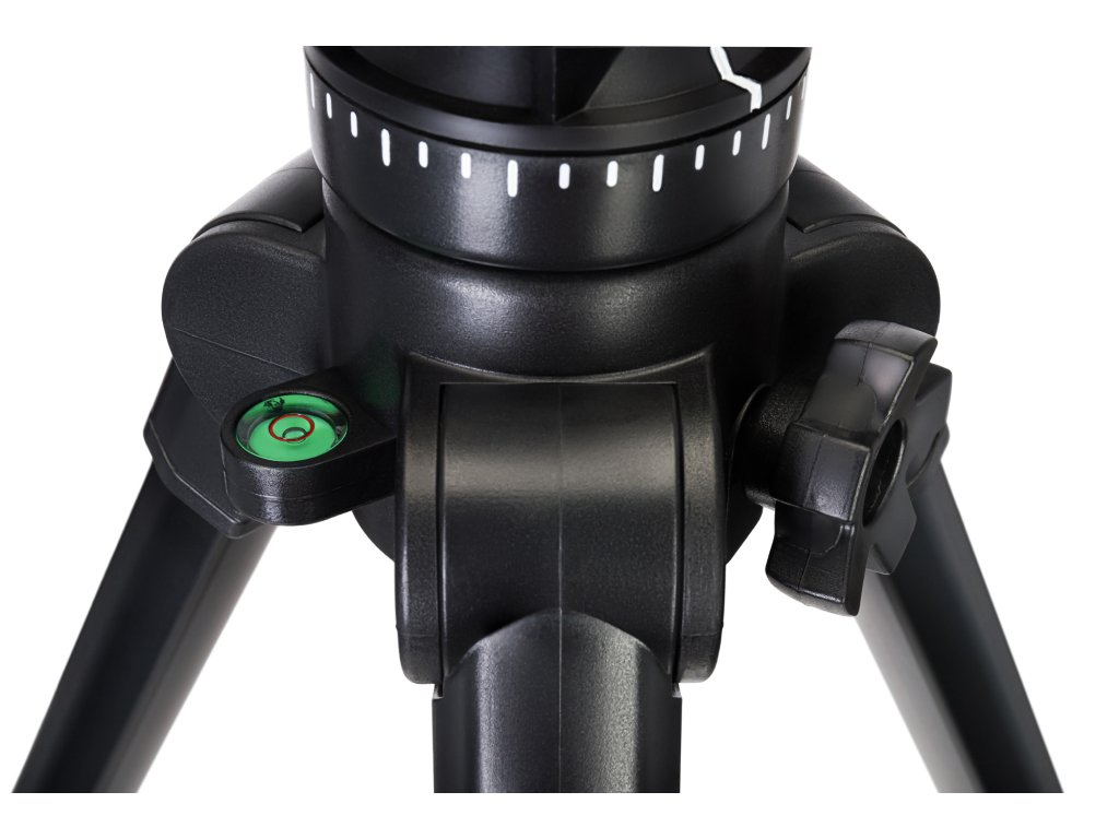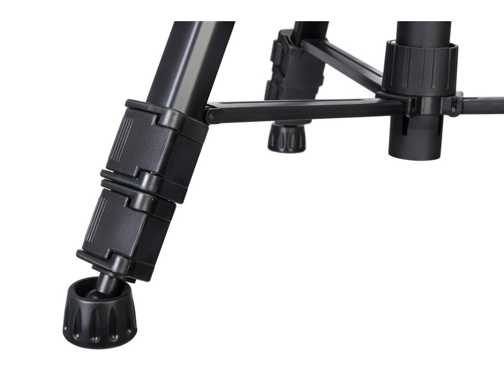 Stativ je vyroben z kovu. Jeho výsuvné nohy jsou vybaveny systémem flip-lock, který umožňuje rychlé nastavení výšky. Středový sloupek lze také zvednout a spustit. Použitím bublinkové vodováhy je vhodné nastavit fotoaparát rovnoběžně se zemí.