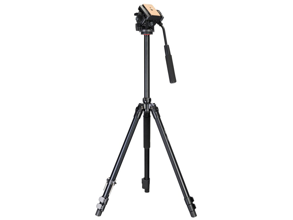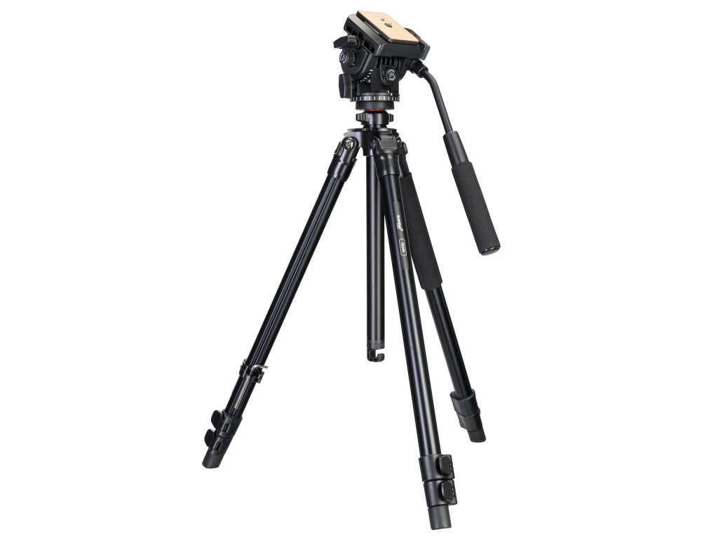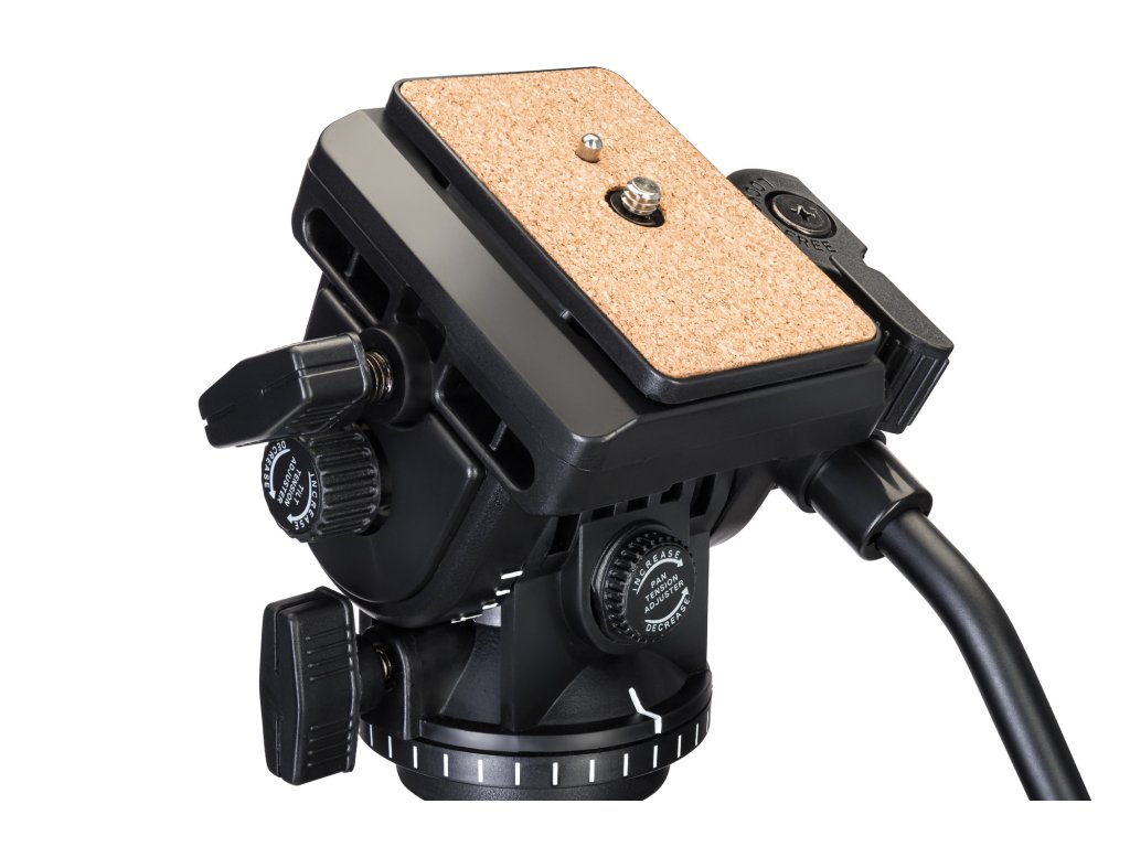 Stativ je vybaven kapalinovou hlavou. Jeho hlavní výhodou oproti jiným modelům je její plynulejší pohyb. To je zásadní při nahrávání videa, protože videoklipy budou příjemnější pro oči bez trhavých pohybů a náhlých přerušení. Hlavu můžete ovládat speciální pákové rukojeti. Hlavu lze otáčet horizontálně o 360°, stejně jako zvedat nebo spouštět. Všechny tyto směry jsou vybaveny aretačními knoflíky.