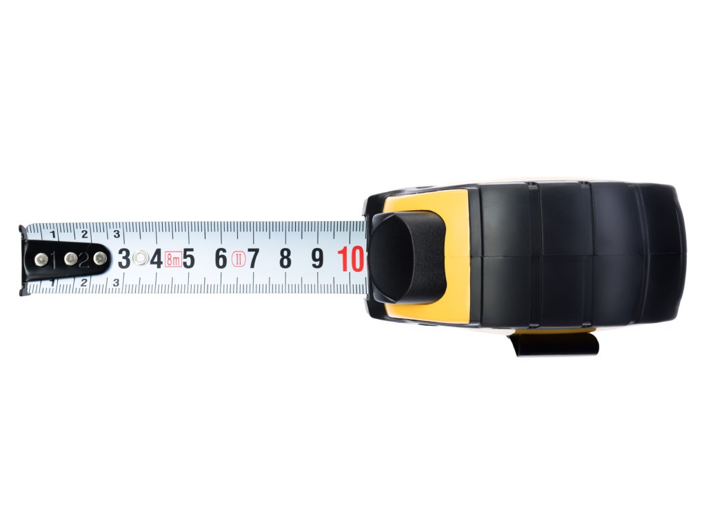 - Ocelová páska se stupnicí na jedné straně vyrobena z kartáčované oceli o délce 8 metrů