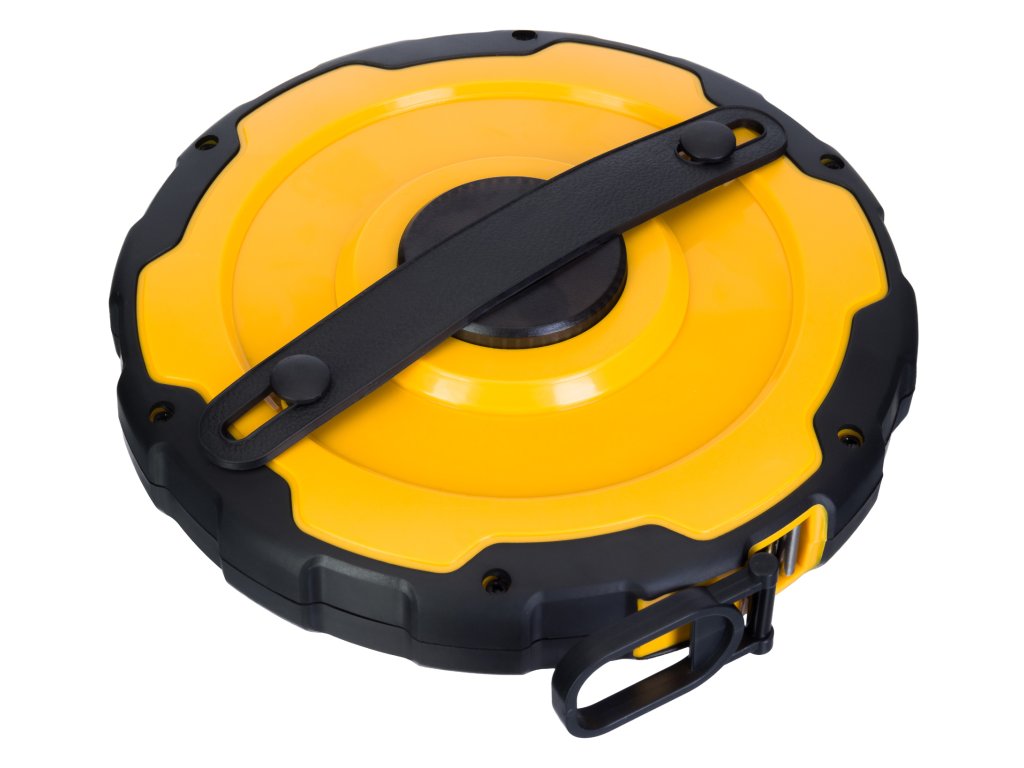 Sklolaminát, ze kterého je páska vyrobena, je velmi pevný materiál, který je odolný proti oděru, poškození a natažení. Je proto zárukou dlouhé životnosti výrobku a spolehlivého provozu měřicího přístroje. Sklolaminát je navíc vodotěsný, takže pásku můžete používat v jakémkoli prostředí, dokonce i při vysoké vlhkosti nebo za deště. Ruční kličku na boku, která slouží k navíjení pásky, lze složit. Na horní části pouzdra je kryt z termoplastické pryže (TPR) umožňující pohodlné držení.