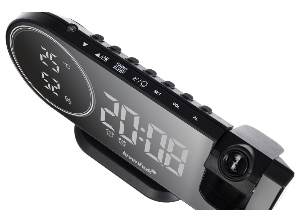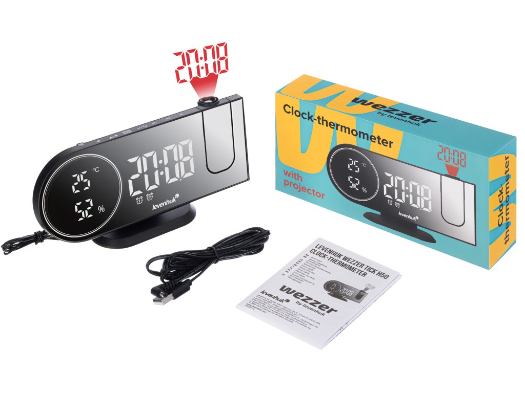 Hodiny s teploměrem Levenhuk Wezzer Tick H50 se určitě stanou vaším oblíbeným přístrojem. Přístroj má velmi stylový design: zrcadlová LCD obrazovka v černé barvě s kontrastními lakonickými číslicemi. K dispozici je FM rádio, teploměr a vlhkoměr; čas lze promítat na strop nebo na stěnu pomocí otočného projektoru. Kromě toho můžete z těchto hodinek nabíjet svůj smartphone – na zadním panelu je port USB pro nabíjení mobilních zařízení.