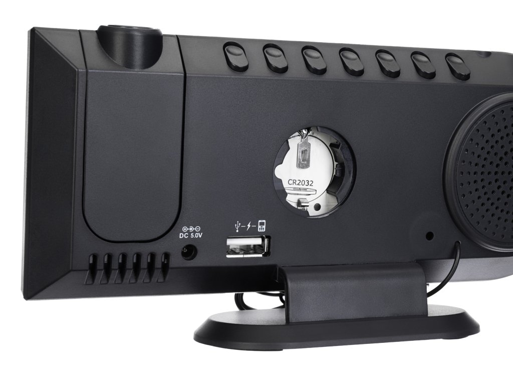 Ovládací tlačítka jsou na zadním panelu, a tak nenarušují celý design předního panelu. Přístroj je napájen ze sítě. Hodiny můžete umístit pouze na stůl.