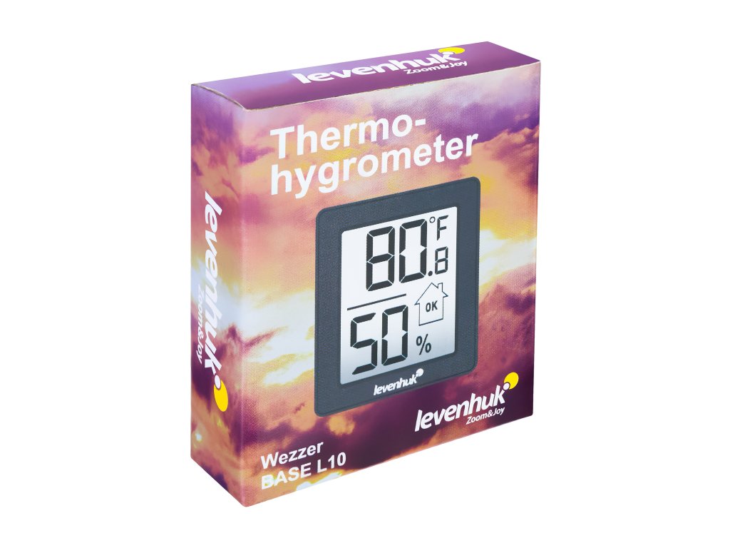 Termohygrometr Levenhuk Wezzer BASE L10 je malý přístroj, který vám pomůže kontrolovat teplotu a úroveň vlhkosti vzduchu v místnosti. Je užitečný v bytě, kanceláři, ve venkovském domě, nebo při cestování. Přístroj nemá více dalších funkcí – je to vynikající základní model pro sledování klíčových parametrů mikroklimatu. Můžete sledovat změny teploty a zabránit tvorbě plísní nebo naopak zabránit nadměrně suchému vzduchu.