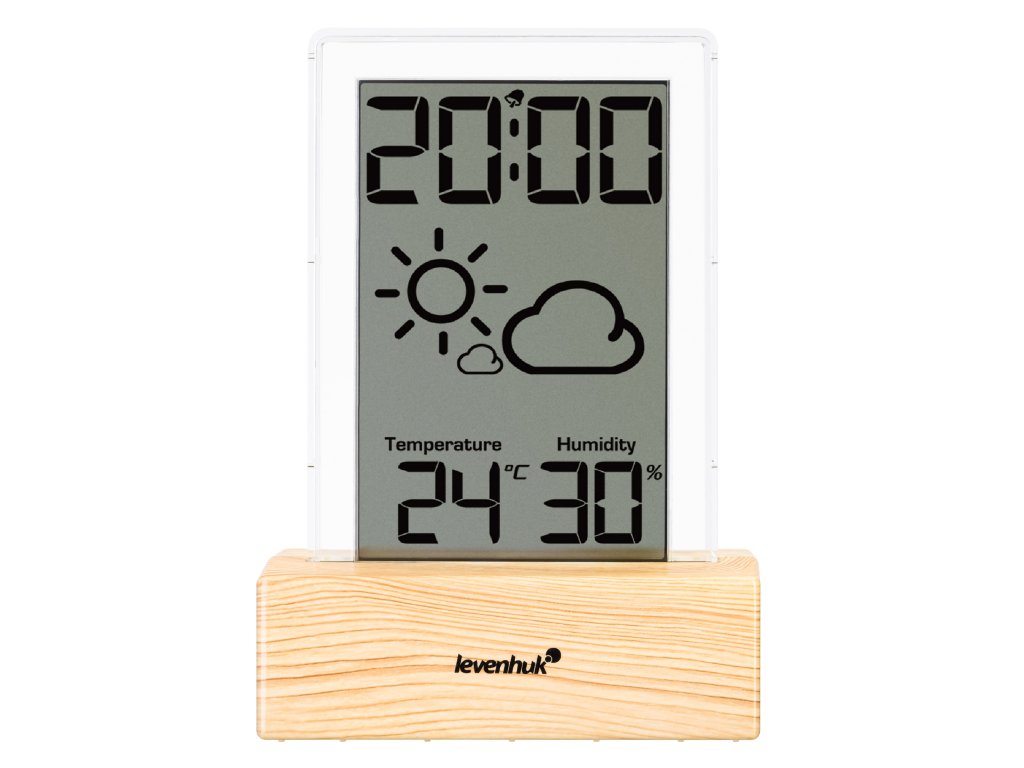 Protože přístroj Levenhuk Wezzer L60 má bateriové napájení, nevyžaduje připojení k elektrické síti ani kabely ležící na podlaze. Spolu s informacemi o hodnotách vlhkosti a teploty může přístroj zobrazovat také jednu z pěti ikon předpovědi počasí. V horní části obrazovky jsou hodiny s velkými číslicemi viditelnými i z velké vzdálenosti. Toto chytré zařízení může snadno sloužit jako elegantní alternativa k budíku na nočním stolku. Buzení lze odložit stisknutím tlačítka – během 5 minut opět zazní zvukový signál.