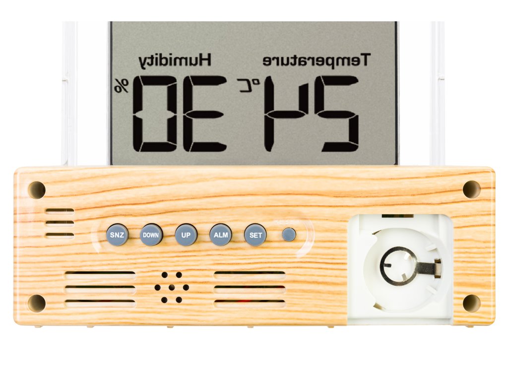 - Stylový digitální přístroj s funkcemi meteorologické stanice a budíku