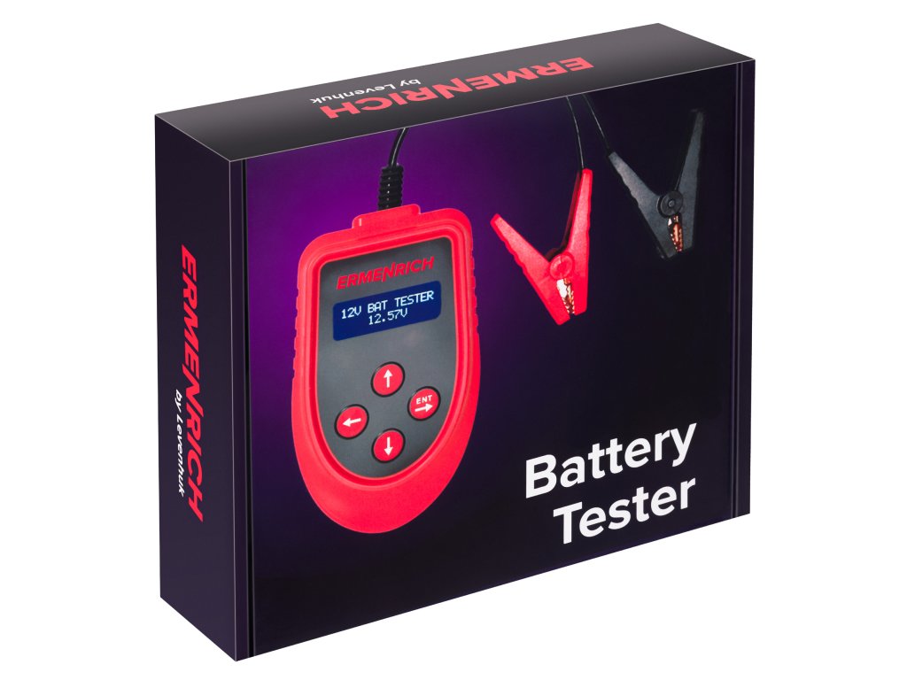 Přístroj se k baterii připojuje pomocí dvou krokosvorek. Vestavěný displej zobrazuje všechna měření a ovládá se pomocí ovládacích prvků umístěných ve spodní části. Přístroj se nabíjí prostřednictvím testované baterie, a není tedy zapotřebí žádný další zdroj napájení.