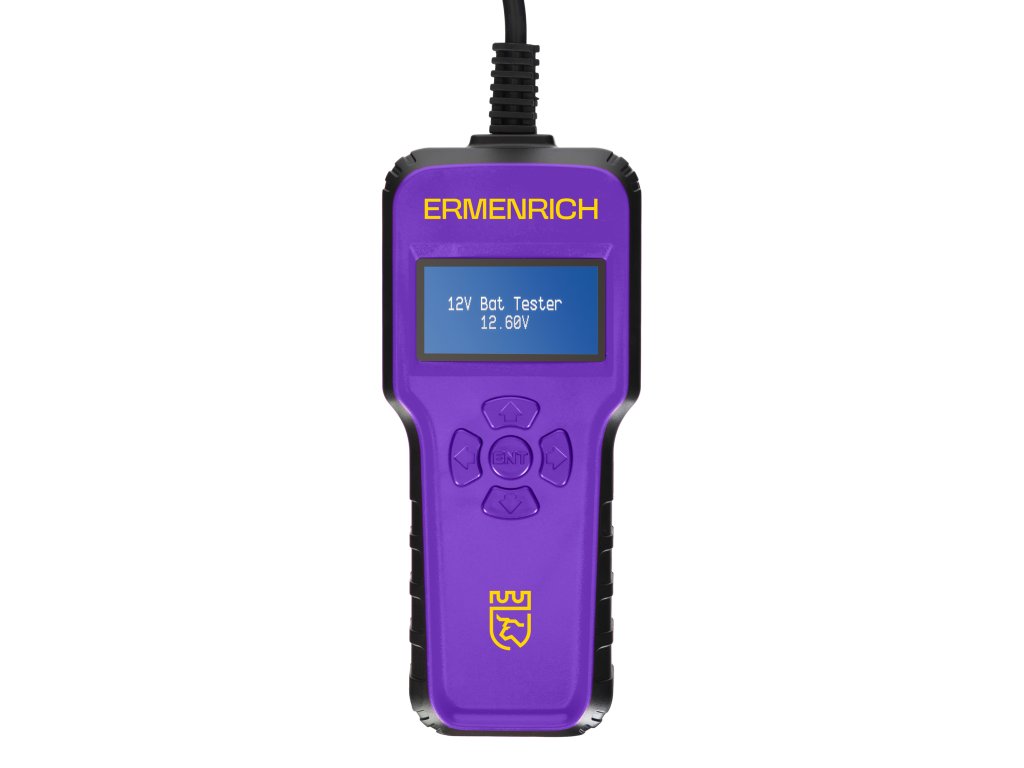 Tester autobaterií Ermenrich Zing AL40 je určen k analýze stavu autobaterie, jejího výkonu a hlavních parametrů. Přístroj má vestavěný displej a k baterii se připojuje pomocí dvou krokosvorek. Přístroj můžete ovládat a parametry testu nastavovat pomocí jednoduchých ovládacích prvků.