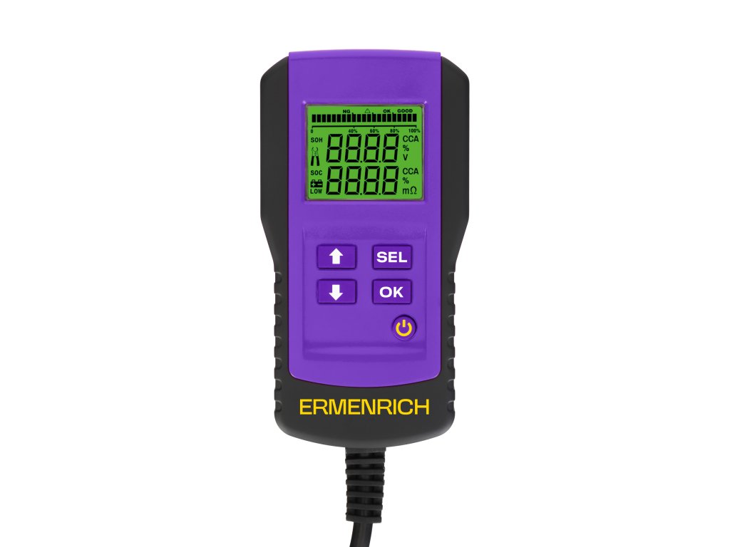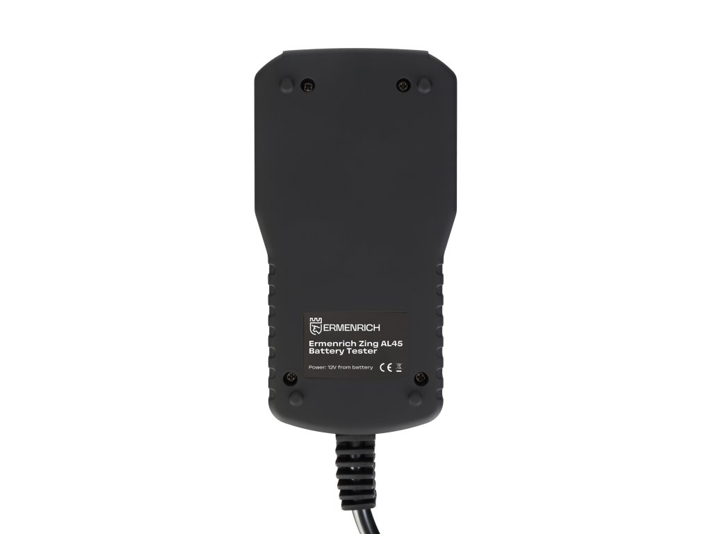 Tester autobaterií Ermenrich Zing AL45 je intuitivní přístroj, který umožňuje rychlou kontrolu stavu autobaterie nebo zdroje nepřerušovaného napájení (UPS). Tester se připojuje k anodě a katodě pomocí dvou svorek. Stejným způsobem se tester také nabíjí – není zapotřebí žádný další zdroj napájení.