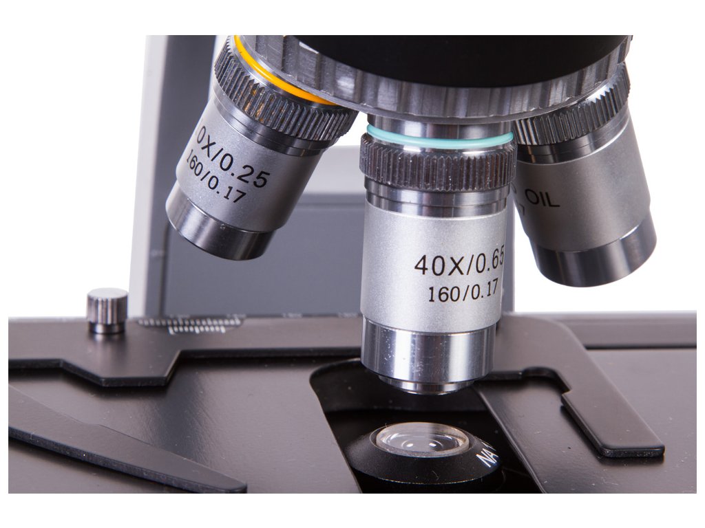 Revolverový nosič je navržen tak, aby mohl nést 4 objektivy. Jejich kombinování s vyměnitelnými okuláry o různém zvětšení vám dává na výběr z široké řady pevných hodnot zvětšení v rozsahu 40–2000x. Všechny okuláry, které jsou součástí sady, jsou dodávány v páru.