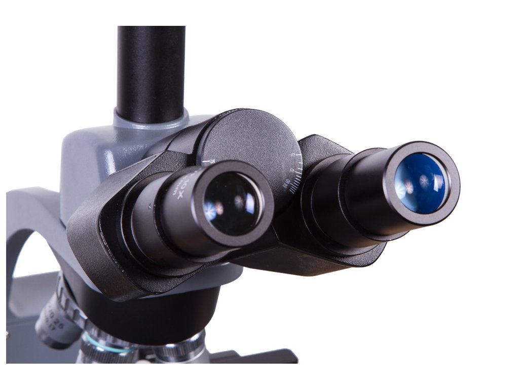Levenhuk 740T – trinokulární mikroskop, který vám umožňuje provádět klasické biologické studie a používat k pozorování moderní technologie. Trinokulární hlava umožňuje instalaci jakéhokoli digitálního fotoaparátu nebo kamery upravené na okulárový tubus 23,2 mm.