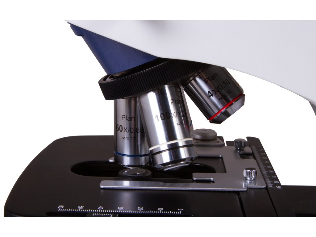 Jedním z nejdůležitějších rysů na nekonečno korigovaných optických systémů je, že umožňují instalaci dalších dílů do optické trasy mezi čočkami objektivu a tubusem okuláru. Mezi tyto další díly patří polarizační filtry a epifluorescenční světlo. Celkově vzato, díky modulární konstrukci a snadné obsluze jsou mikroskopy Levenhuk MED 35 optimální pro použití v různých typech mikroskopie a při práci v hematologických, histologických, mikrobiologických a dalších laboratořích.