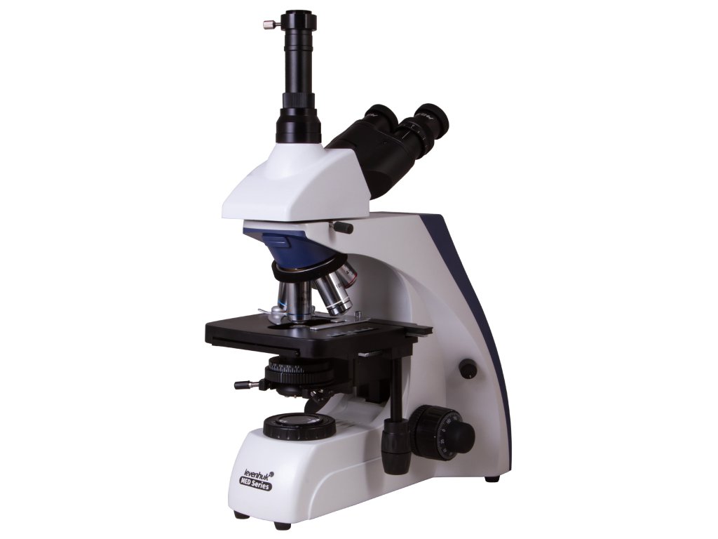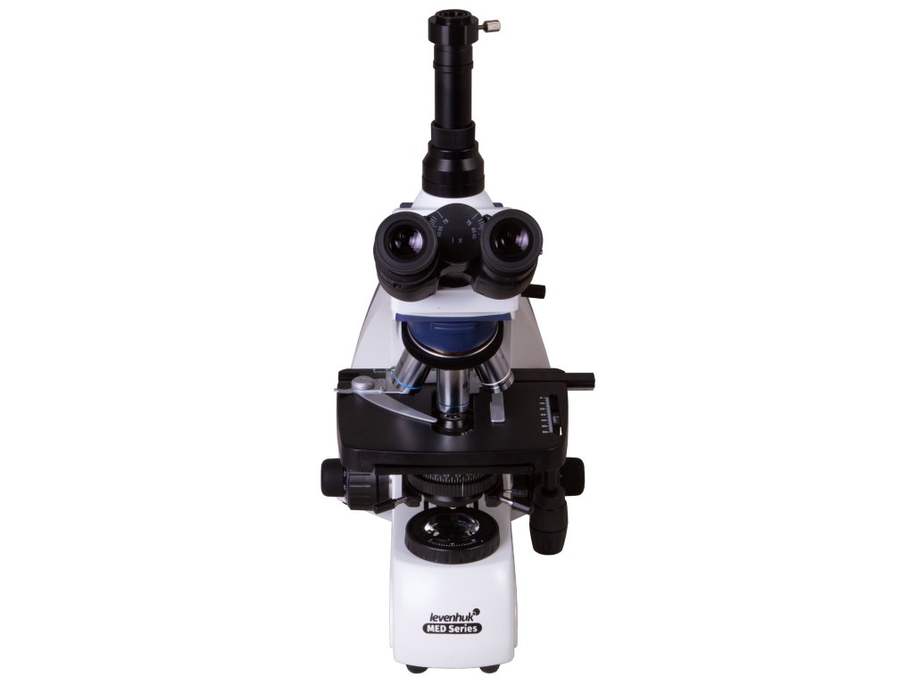 Trinokulární mikroskop Levenhuk MED 35T je kompatibilní s digitálními fotoaparáty Levenhuk (kupují se samostatně). Fotoaparáty Levenhuk se instalují místo okuláru na jeho tubus.