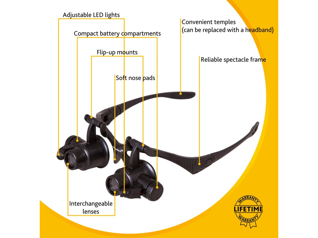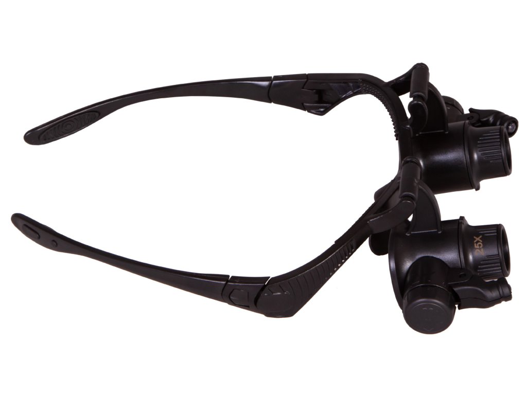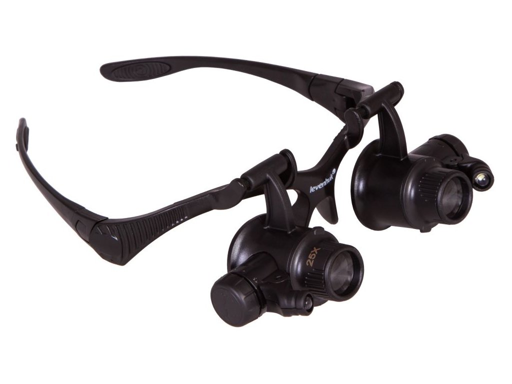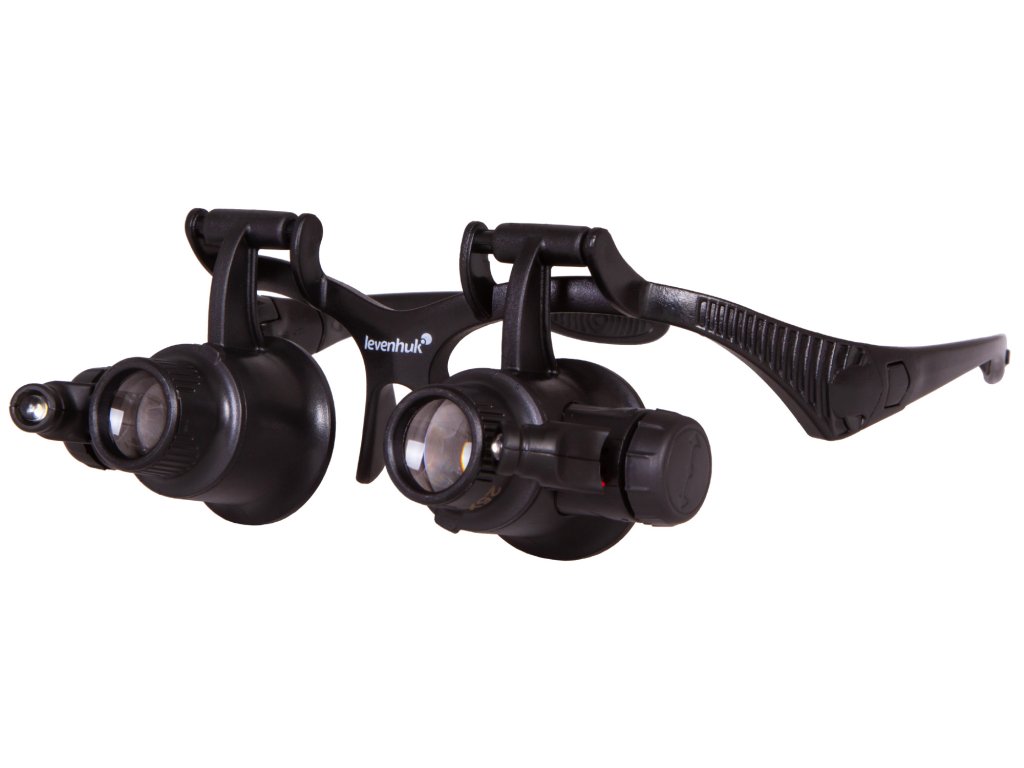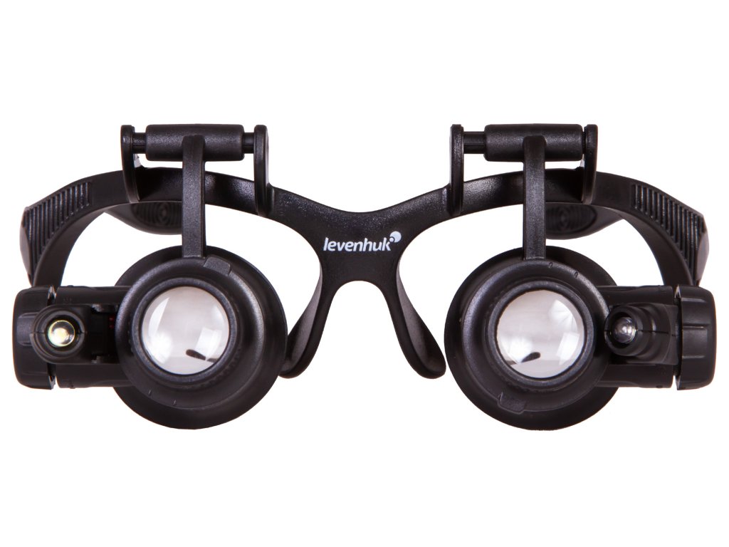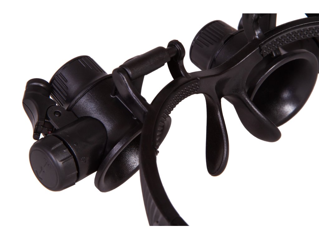Na základně zvětšovacích brýlí vedle čoček jsou dvě LED žárovky napájené bateriemi. Tato světla umožňují práci se zvětšovacími brýlemi ve špatně osvětlené místnosti. Osvětlení je jasné a rovnoměrné. Úhel sklonu světla je variabilní.